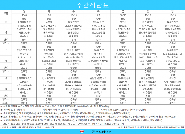 2025년 12월 둘째주 식단표 페이지 정보 작성자 최고관리자 댓글 0건 조회 70회 작성일 25-12-08 11:48 목록 본문 2025년 12월 둘째주 식단표입니다. 이전글2025년 12월 셋째주 식단표 25.12.15 다음글2025년 12월 첫째주 식단표 25.12.02 댓글 0 댓글목록 등록된 댓글이 없습니다.