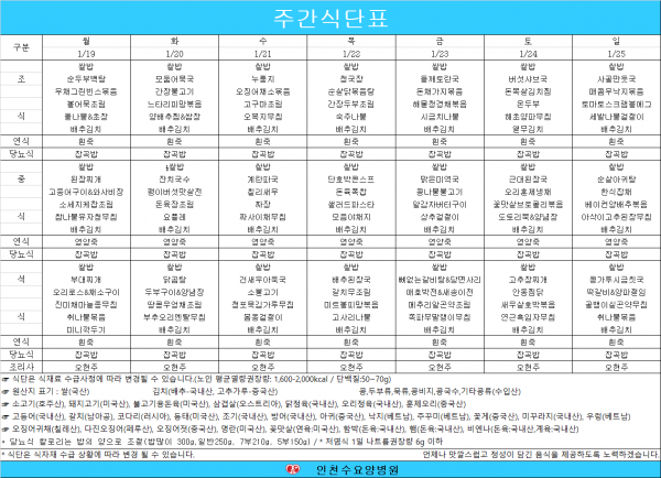2026년 01월 넷째주 식단표 페이지 정보 작성자 최고관리자 댓글 0건 조회 43회 작성일 26-01-19 11:31 목록 본문 2026년 01월 넷째주 식단표입니다. 이전글2026년 01월 다섯째 주 식단표 26.01.26 다음글2026년 01월 셋째주 식단표 26.01.12 댓글 0 댓글목록 등록된 댓글이 없습니다.